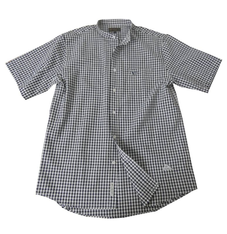 CHUBEI(チュウベイ) メンズ 春夏 半袖 カジュアル バンドカラー シアサッカーシャツ 白黒 ギンガムチェック 5378 ...