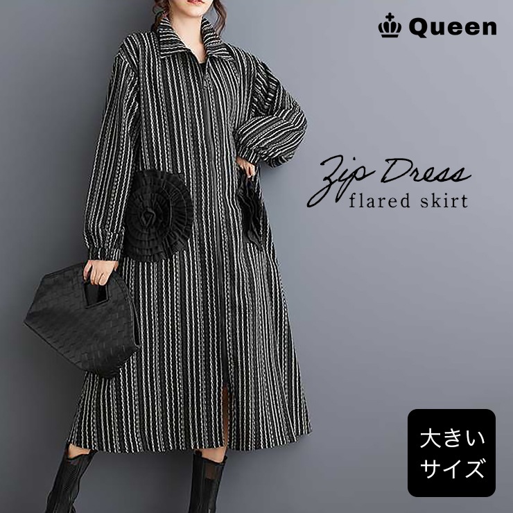 大きいサイズ ワンピース ジップコート ジャケットワンピ モノトーン アウター レディース 長袖 春 秋 冬 (448516)