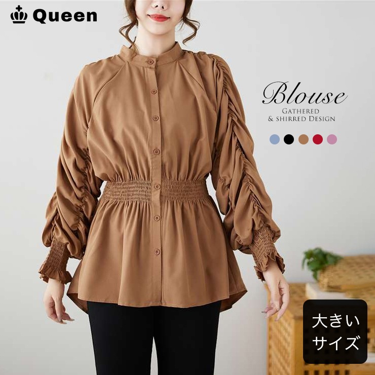 ウエストシャーリングギャザースリーブブラウス (179551)