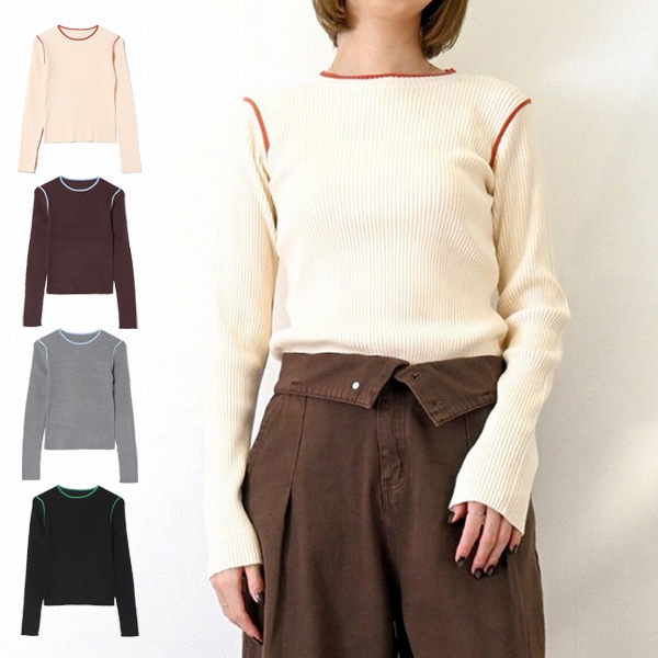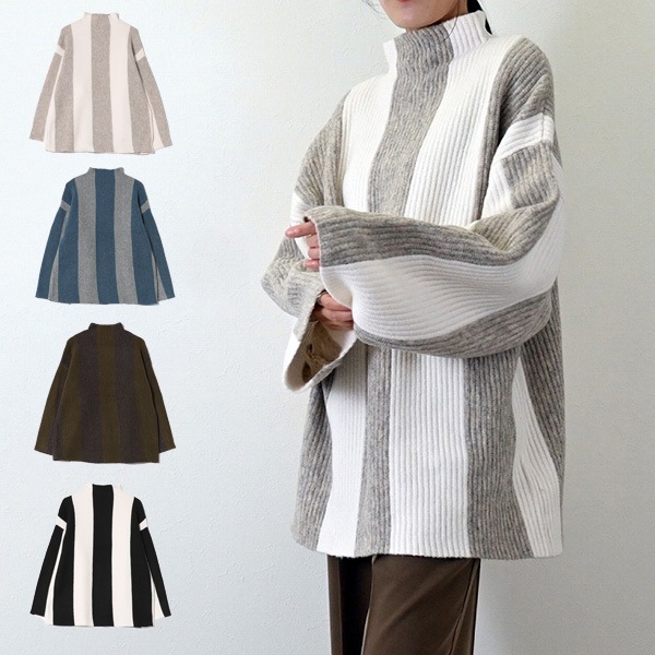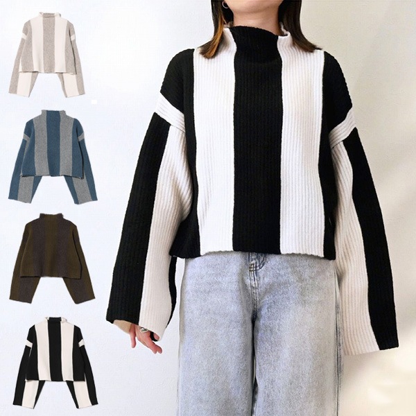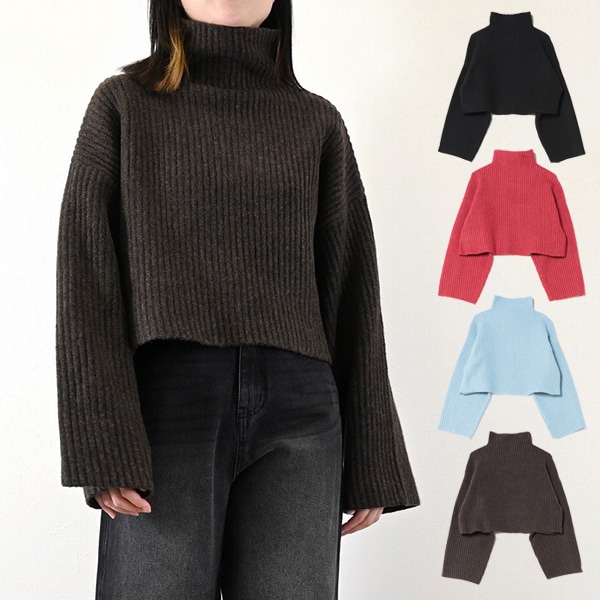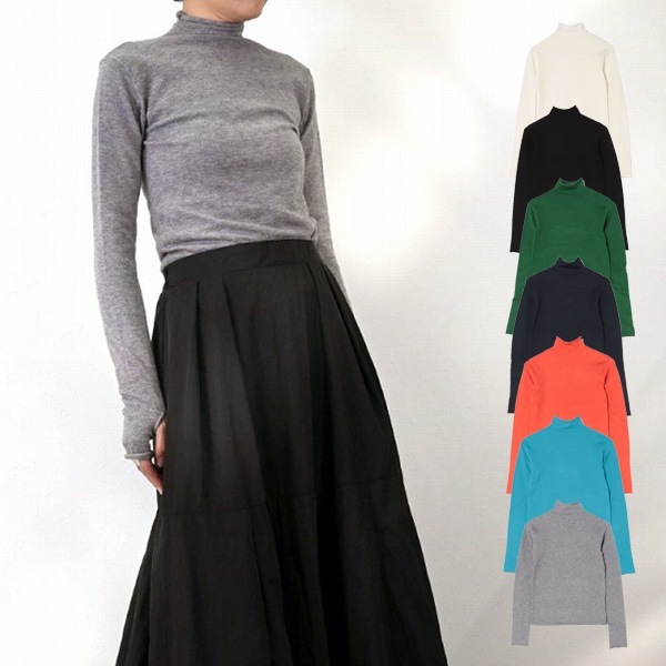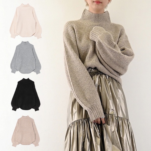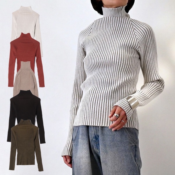 プレーティングリブニットシームレスタートルネックプルオーバー