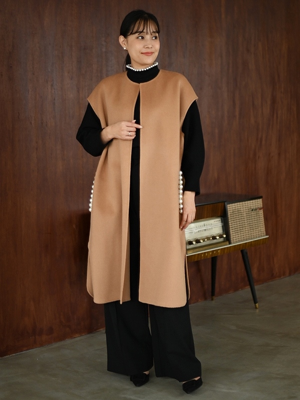 ダブルクロスノーカラーミディコート
