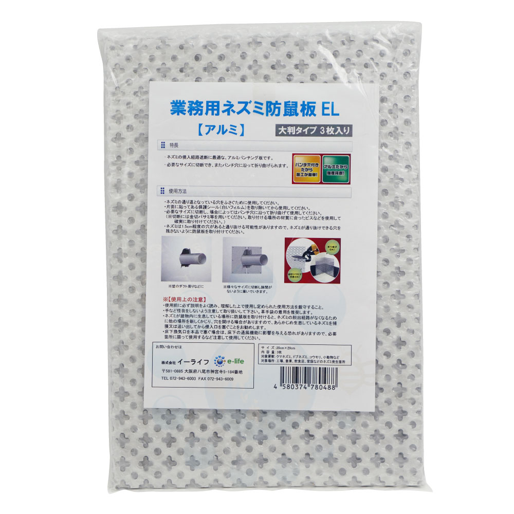 ネズミ駆除 業務用 ネズミ防鼠板 EL アルミ 大判タイプ 3枚入 【ゆうパケット対応!送料275円】 鼠の侵入を防ぐ金属板