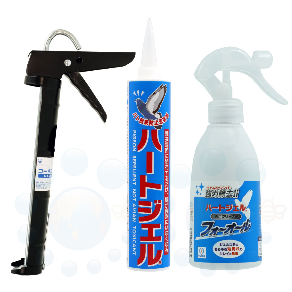 ハト カラス 飛来防止剤 ハートジェル 285g + ハートジェル リムーバー フォーオール 300ml + コーキングガン レギ...