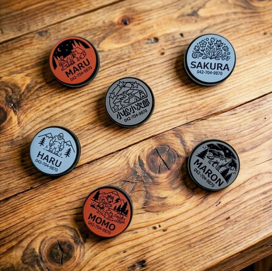 持っている首輪にかんたん装着 セミオーダー迷子札 SAKURA DOGWARE 名前・電話番号彫刻 真鍮無垢プレート(プレート素材...