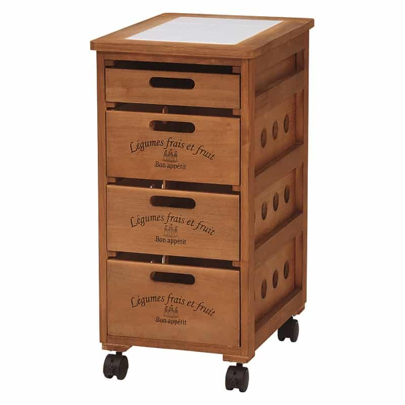Cave 寄木柄54cmレンジ台キャスター付き 128002_DBR ダークブラウン