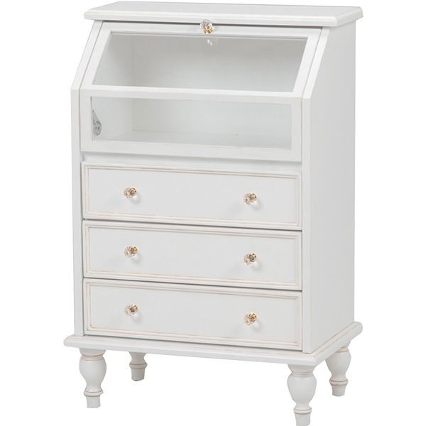 キャビネット 収納 引き出し ガラス おしゃれ 白 アンティーク
