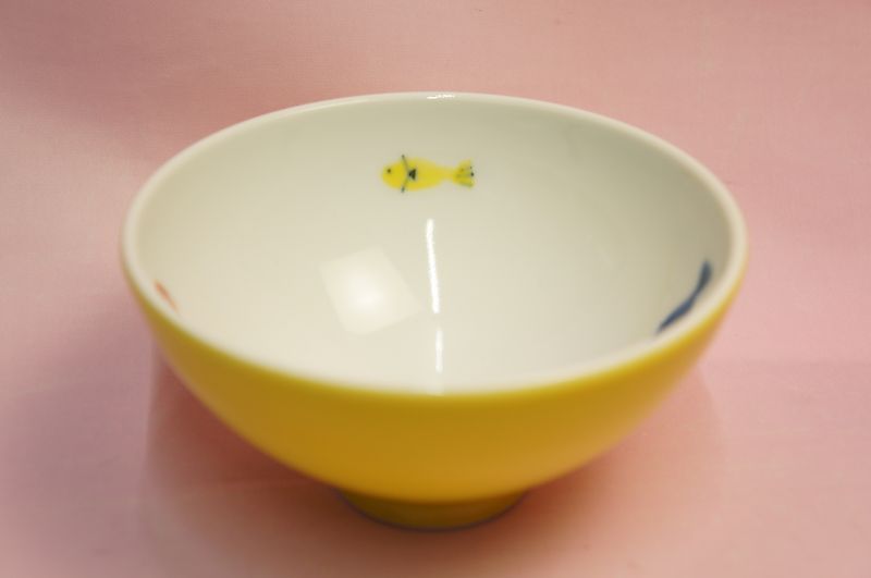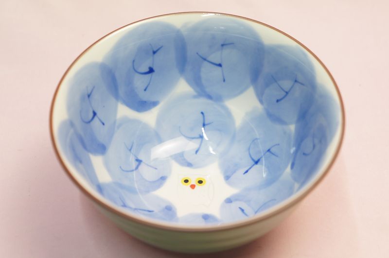 砥部焼 陶房拓実(山中窯)ごはん茶碗(丸抜きメダカ)