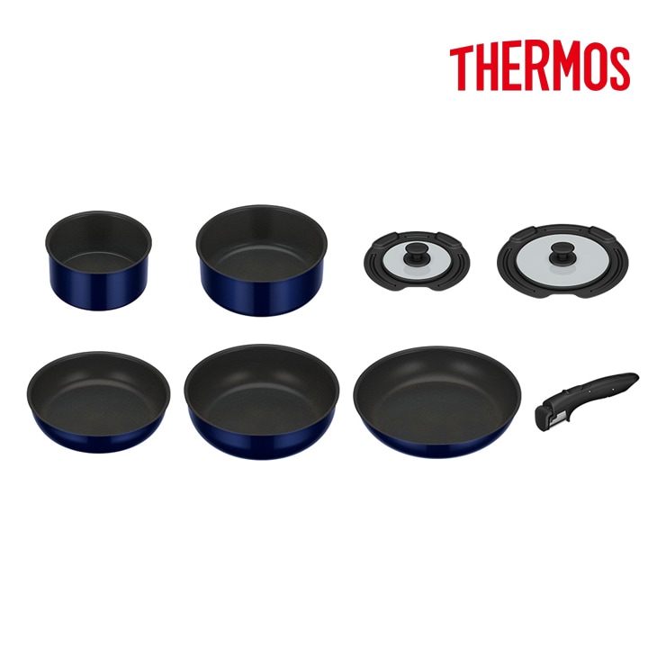 [KSE-8A-DPBL] 取っ手のとれるフライパン8点セット (22cm・26cm・鍋16cm・鍋20cm・炒め鍋24cm・鍋専...