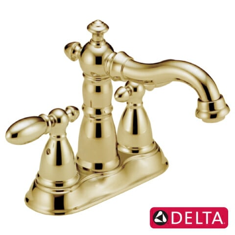 洗面水栓 蛇口 混合水栓 節水 3穴用 ゴールド 奥行13×吐水口高10.2cm DELTA デルタ ヴィクトリアン/Victor...