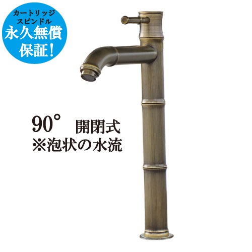 洗面水栓 蛇口 単水栓 シングルレバーハンドル アンティークゴールド(古金) バンブー [奥行3.5×吐水口高22.5cm] IN...