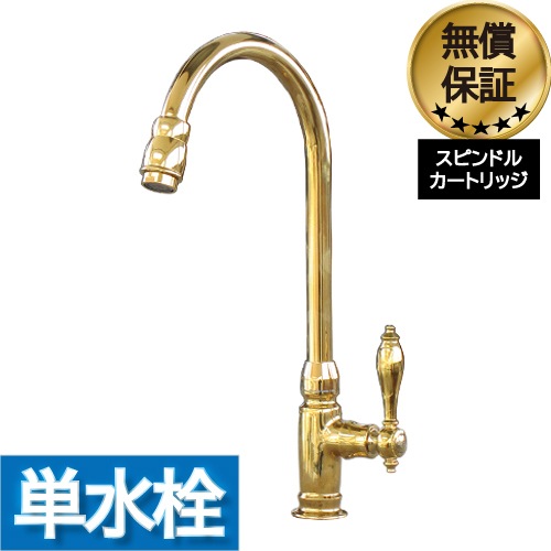 洗面水栓 蛇口 水栓金具 単水栓 シングルレバーハンドル モンキーレンチ ゴールド(金) [奥行16×吐水口高22.2cm] IN...