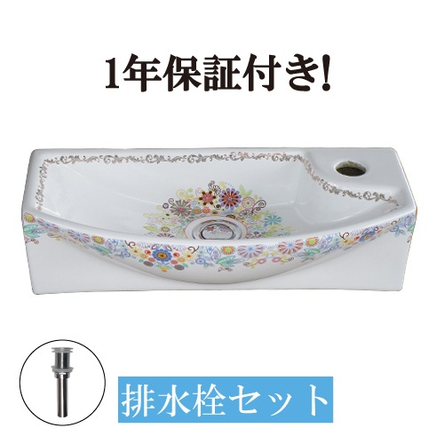 洗面台 洗面化粧台 陶器洗面ボウル+化粧台+単水栓+プッシュ式排水栓+トラップ 5点セット VIC-27 INK-0501062H...