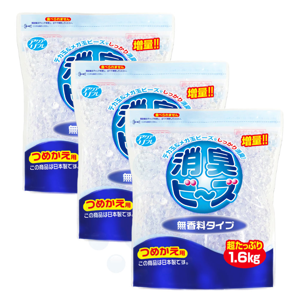 アクアリフレ 消臭ビーズ 無香料タイプ つめかえ用 1.6kg×3個 消臭剤 大型 大容量 喫煙室 更衣室 会議室