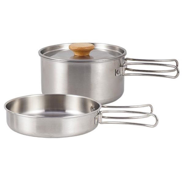 アウトドア ステンレス製 調理器具 2点セット 収納袋付き 持ち手 折りたたみ式 片手鍋 フライパン コンパクト収納 耐久性 錆び...