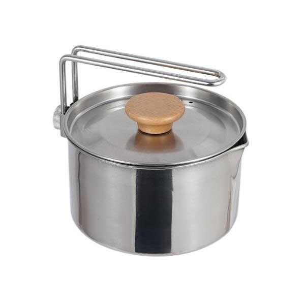 アウトドア ステンレス ケトル 容量1リットル 持ち手変更可能 シンプルデザイン 蓋 火傷防止 木製 キャンプ クッカー ポータブ...