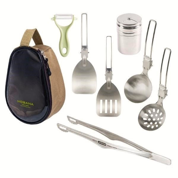 アウトドア キッチンツール 調理器具8点セット ステンレス製 収納袋付き コンパクト収納可能 透明カバー 持ち運びが簡単 初心者オ...