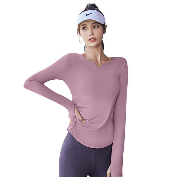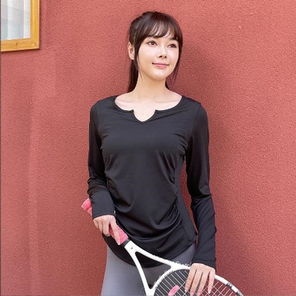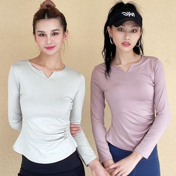 レディース ヨガウェア スポーツウェア カットソー 長袖 トップス キーネック サイドシャーリング スリム ジム フィットネス 運...