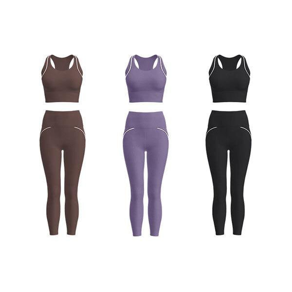 レディース フィットネスパンツ 一体型 ポケット付き 伸縮性 ストレッチ生地 吸汗 快適 スポーツ トレーニング ジム フィットネ...