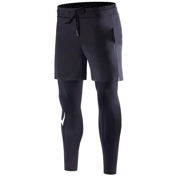 ハーフパンツ付き レギンス 柄あり 柄なし ウエストゴム 引き紐 ポケット スリット メンズ トレーニング スパッツ スポーツウェ...