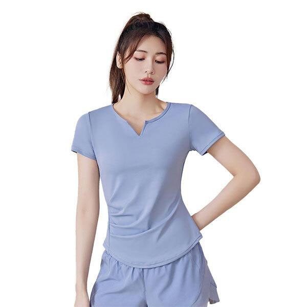 レディース フィットネスTシャツ 半袖 Vネック シンプル 無地 細見え効果 通気性 伸縮性 肌触り Tシャツ スポーツ ヨガ ラ...