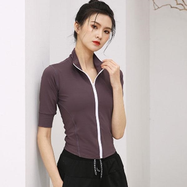 レディース ジップアップ スポーツウェア ヨガウェア 半袖 トップス 速乾性 ストレッチ性 タイト シルエット スポーツ フィット...