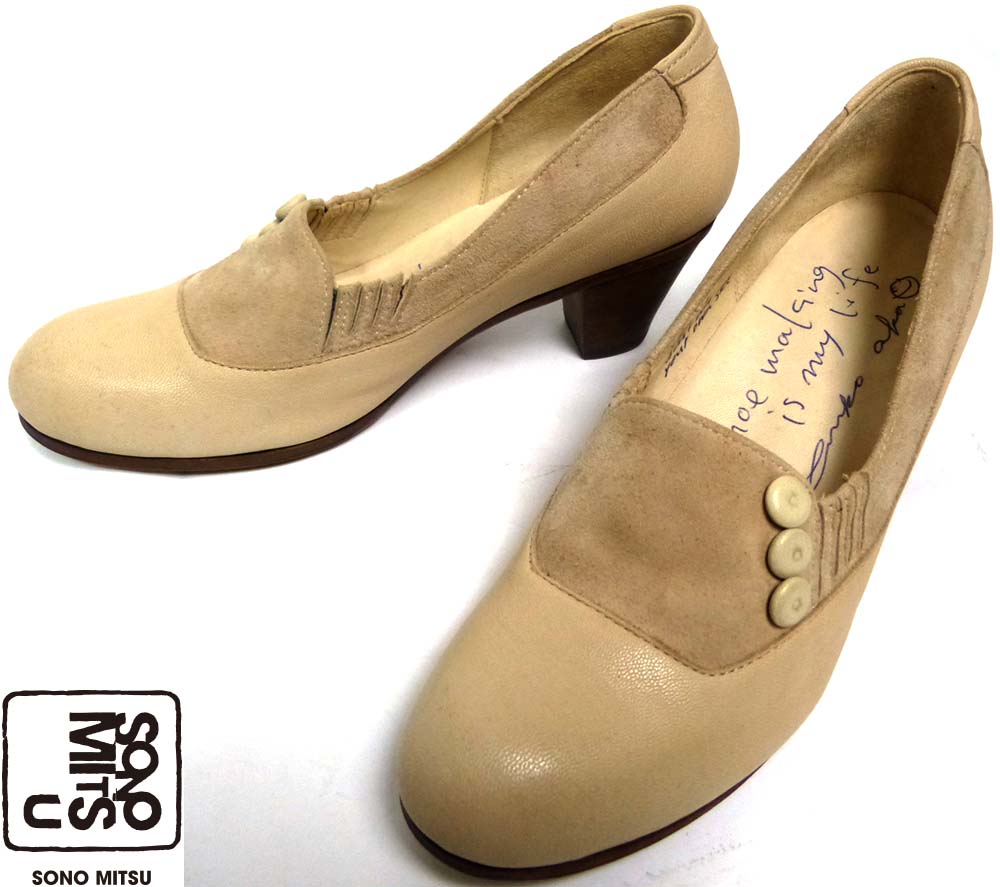 【希少】そのみつ SONOMITSU ボタン付きレザーパンプス (24cm相当)(レディース)(定価約4万円)【中古】