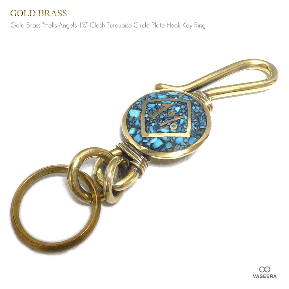 ゴールドブラス(真鍮) Hells Angels(ヘルズ・エンジェルス) 1%(ワンパーセント) クラッシュ・ターコイズインレイ仕...