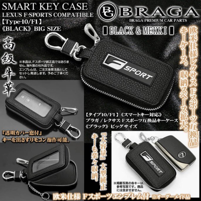 ブラガ/レクサスFスポーツ互換品キーケース[ビッグサイズ/ブラック]F-SPORTSエンブレム[タイプ10/F1]透明窓/スマート...