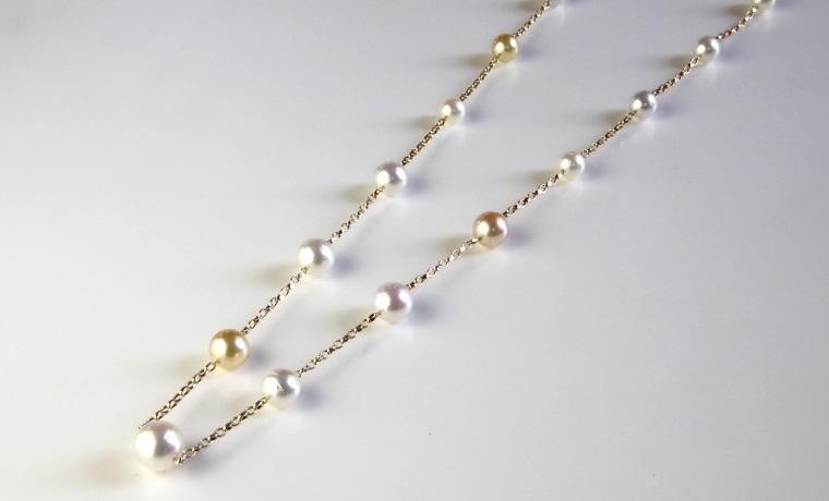 K18/WG白蝶真珠ステーションネックレス【大きさ8-11㎜・長さ74㎝】<G4279>