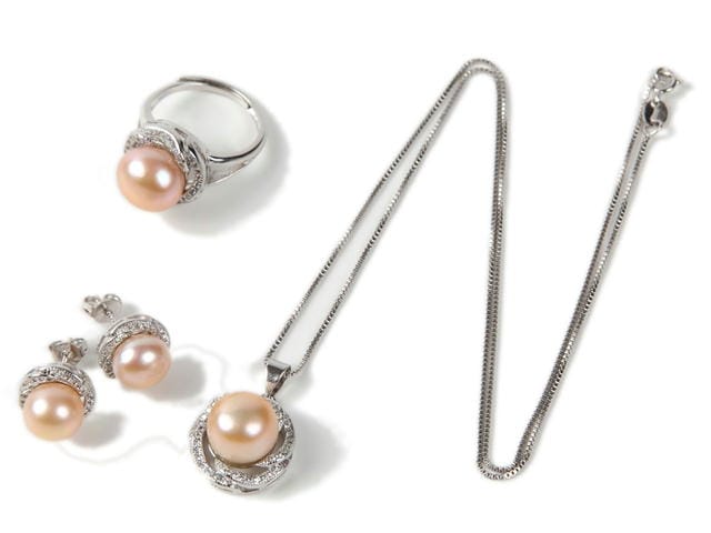 つやたま真珠 最高級大粒本真珠9-10mm 魅惑の三点セット イエローピンク(真珠ペンダント真珠ピアス 真珠リング)ウェーブリング...