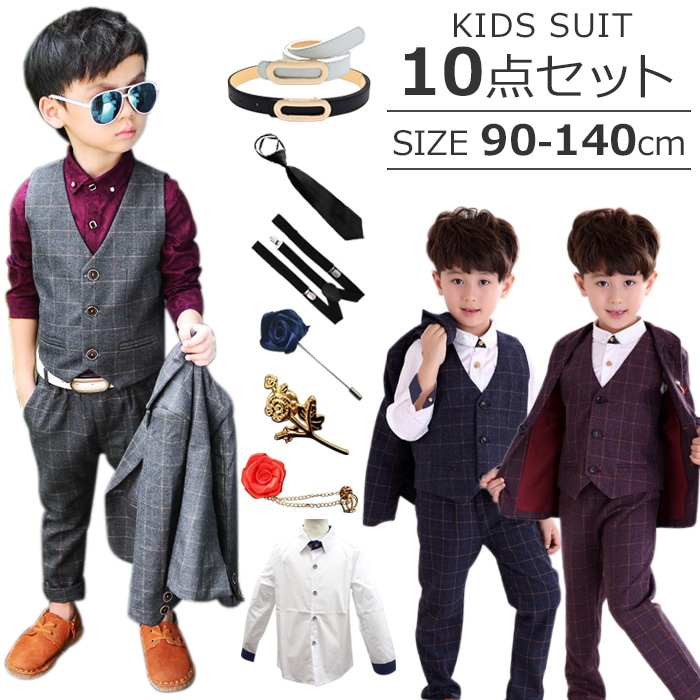 ラブブシール プレゼント中12/20まで 営業日は正午まで当日発送 送料無料 男の子 子供スーツ 10点セット 格子柄 フォーマル...