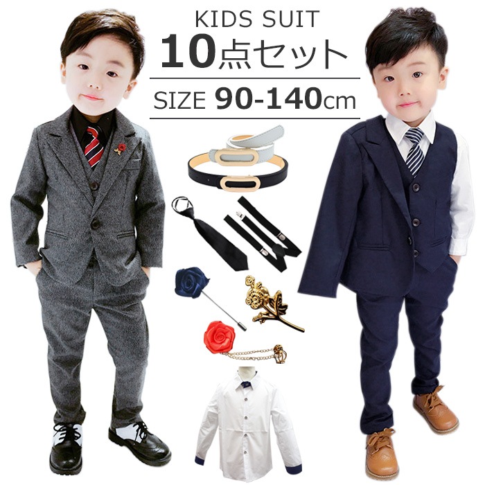 ラブブシール プレゼント中12/20まで 正午まで当日発送(土日祝除く) 男の子 子供スーツ 10点セット フォーマル スーツ 3...