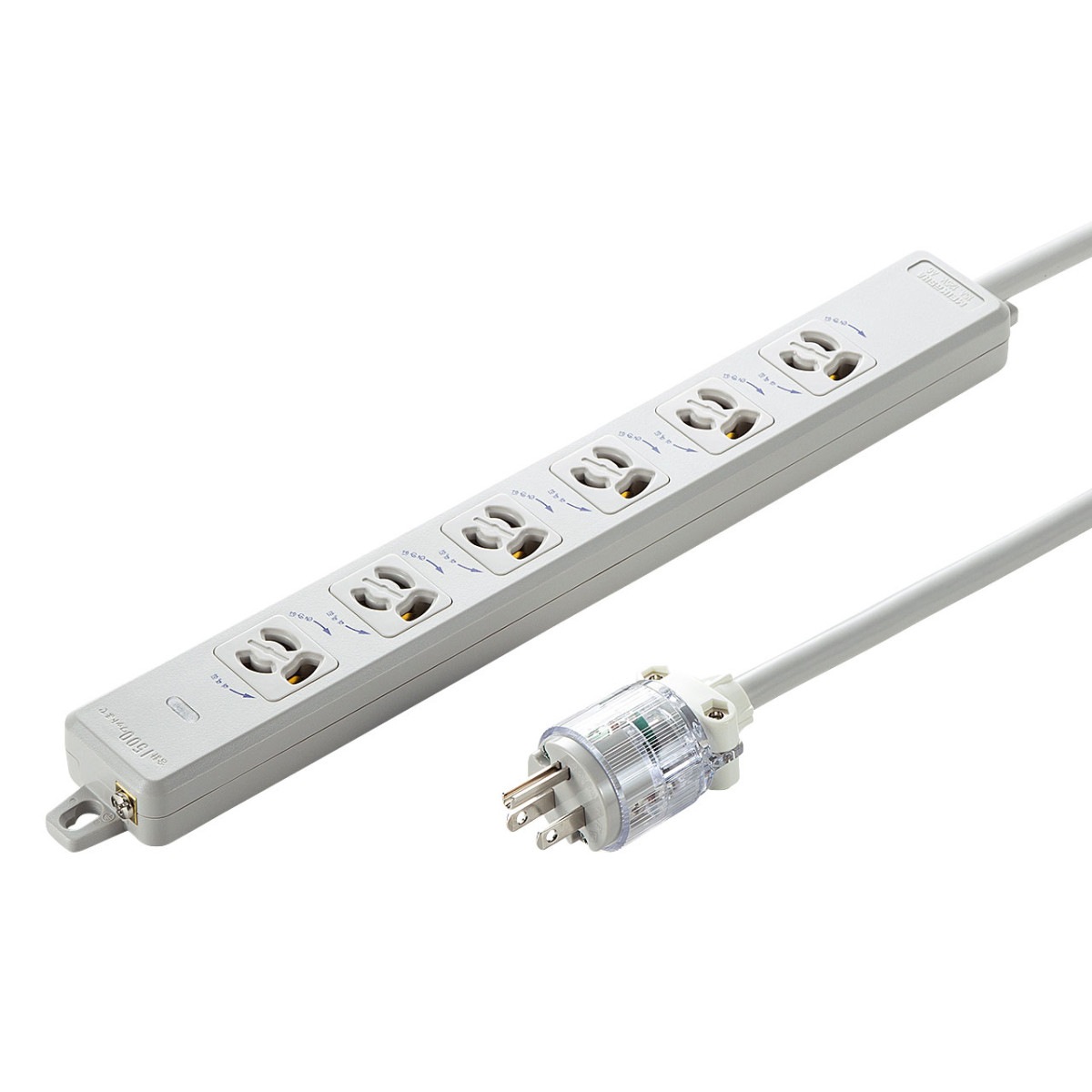 [TAP-HPM6-1W] 医用接地プラグ付き電源タップ(3P・6個口・グレー・1m)