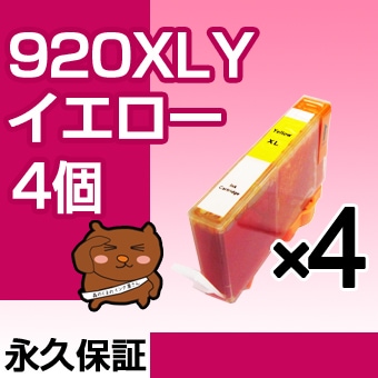 HP920XLY イエロー 4個 互換インク HP(ヒューレットパッカード)プリンター用 【永久保証】