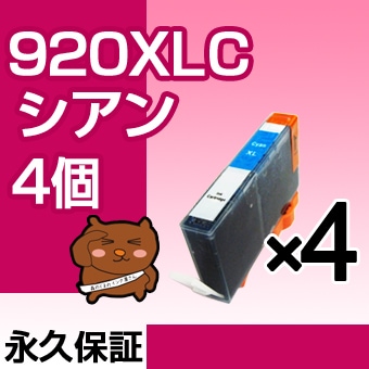 HP920XLC シアン 4個 互換インク HP(ヒューレットパッカード)プリンター用 【永久保証】