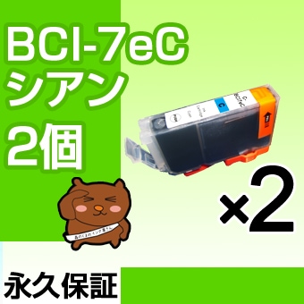 BCI-7eC 2個 互換インク CANON(キヤノン)プリンター用 シアン 【永久保証】