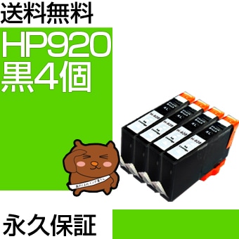 HP920XL (ICチップ付) BK 黒のみ4個セット 互換インク HP(ヒューレットパッカード)プリンター用 (HP920BK...