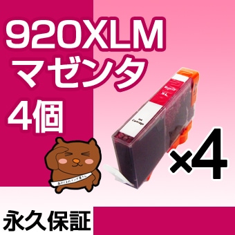 HP920XLM マゼンタ 4個 互換インク HP(ヒューレットパッカード)プリンター用 【永久保証】