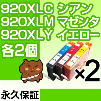 HP920XL CMY 各2個セット 互換インク HP(ヒューレットパッカード)プリンター用 【永久保証】
