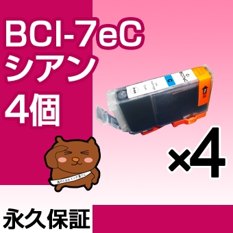 BCI-7eC 4個 互換インク CANON(キヤノン)プリンター用 シアン 【永久保証】