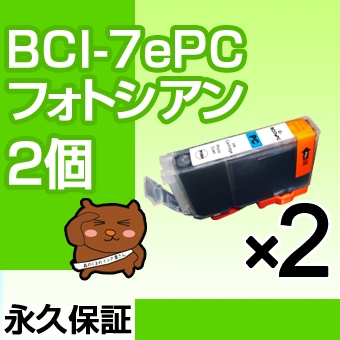 BCI-7ePC 2個 互換インク CANON(キヤノン)プリンター用 フォトシアン 【永久保証】