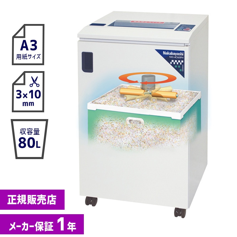 ナカバヤシ A3業務用シュレッダー NXI-406SPH【送料無料】【新品】【メーカー直送】【保守対応可】
