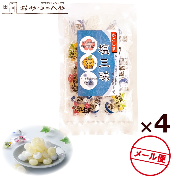 鹿児島塩三昧 梅塩飴 小みかん塩飴 プレーン 塩飴 3種アソート 80g×4 メール便(代引不可) キャンディ