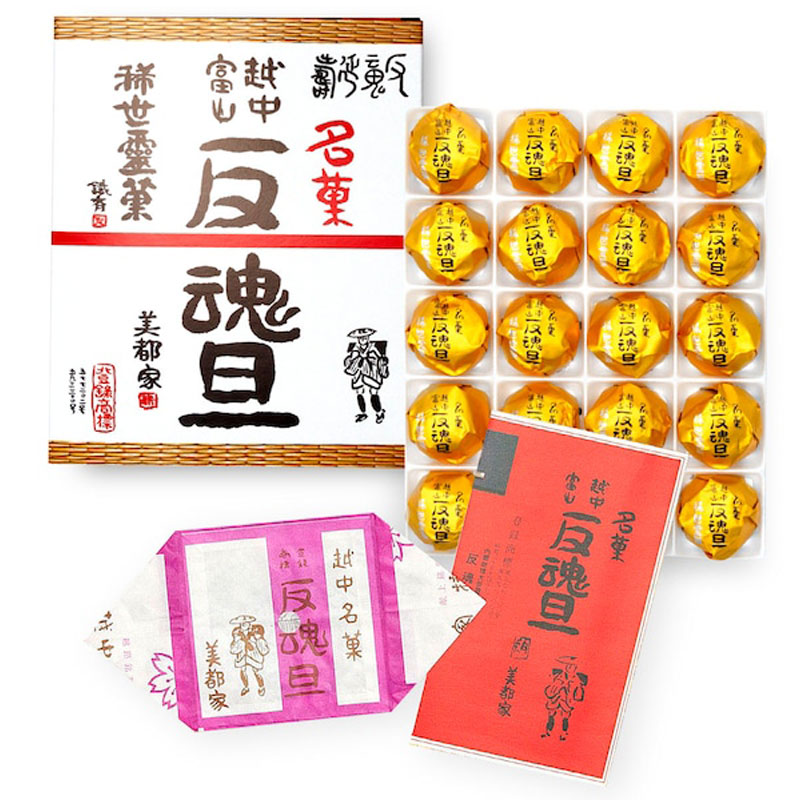 美都家:富山のお菓子「反魂旦(はんごんたん)20個入」紙風船が入って越中富山のお国自慢