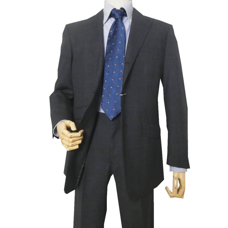 FINTES フィンテス社製生地使用 秋冬 ブラウン グレンチェック 2つ釦スリムスーツ