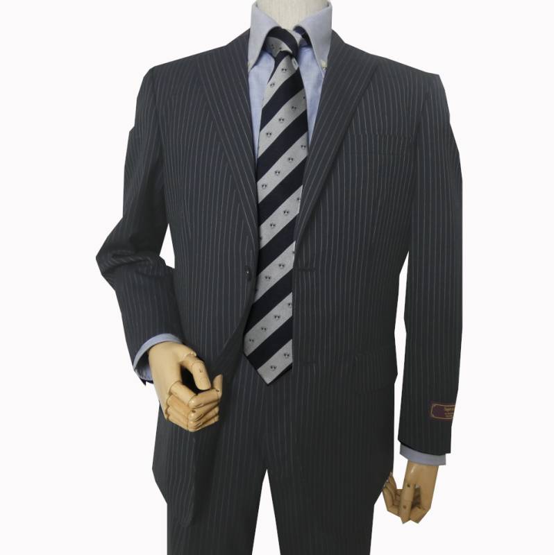 dunhill ダンヒル 社製生地使用 秋冬 ネービーピン&シャドーストライプ 2つ釦ベーシックスーツ A8