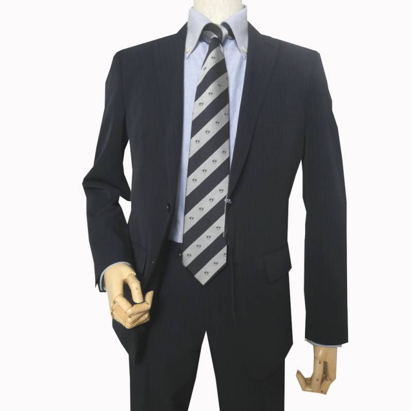 FINTES フィンテス 社製生地使用 秋冬 ネイビーストライプ 2つ釦スリムスーツ