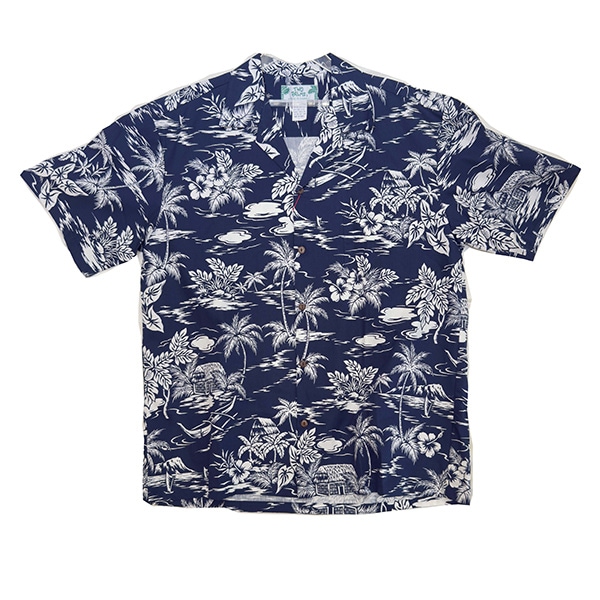 HAWAII アロハシャツ TWO PALMS 501R Vintage Aloha blue