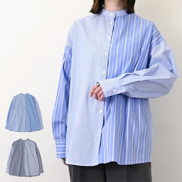 先染めストライプハーフスリーブドロストクロップドシャツ