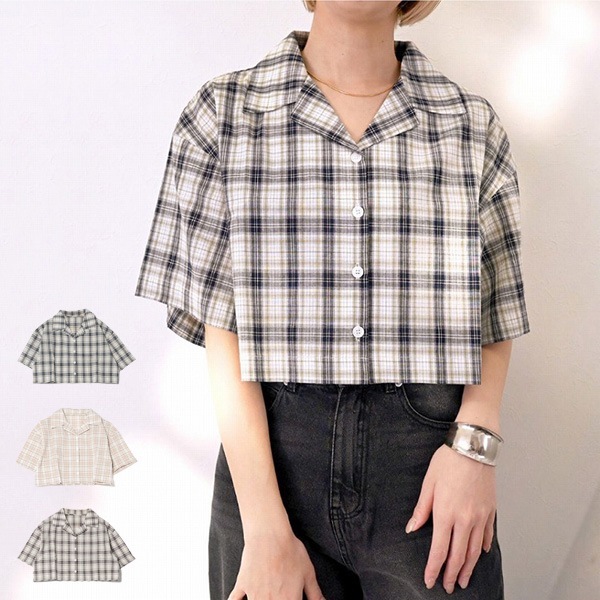 ブロード×ハーフスリーブドロストクロップドシャツ